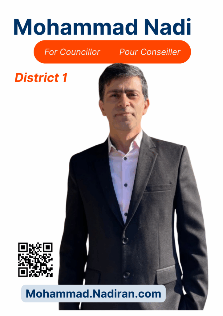 Hello — I’m Mohammad Nadi. I believe municipal government must be efficient, participatory and forward-looking. I want to bring responsible AI into city processes to speed up permitting, improve maintenance, and make information easier to understand for every resident.